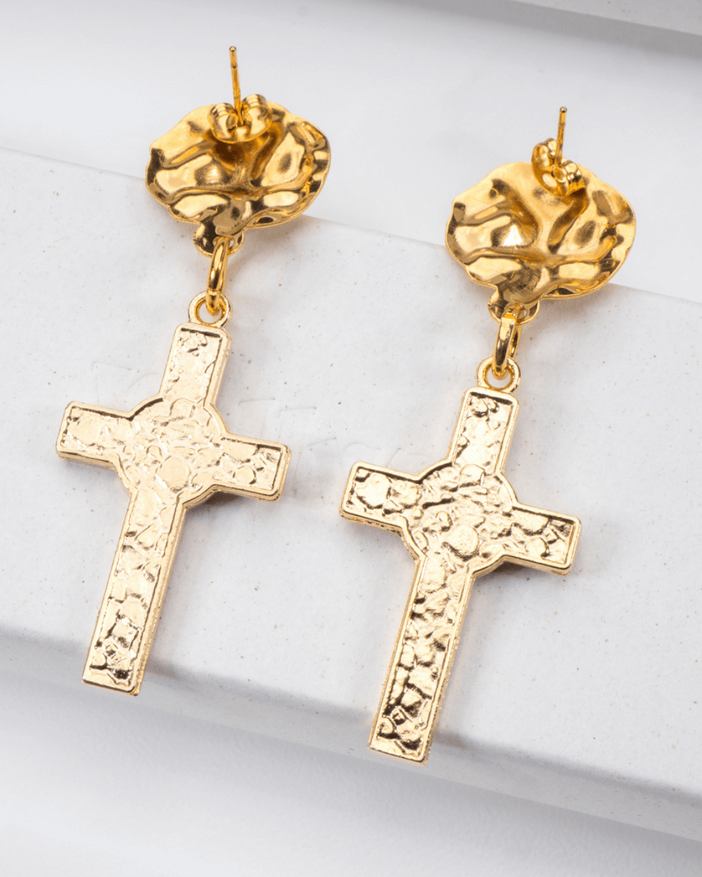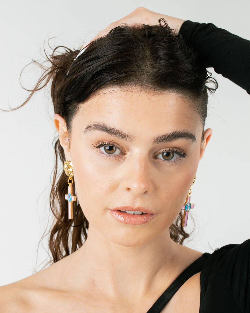 Our bestselling Alessandra pink cross pendant is now available as earrings for the first time.