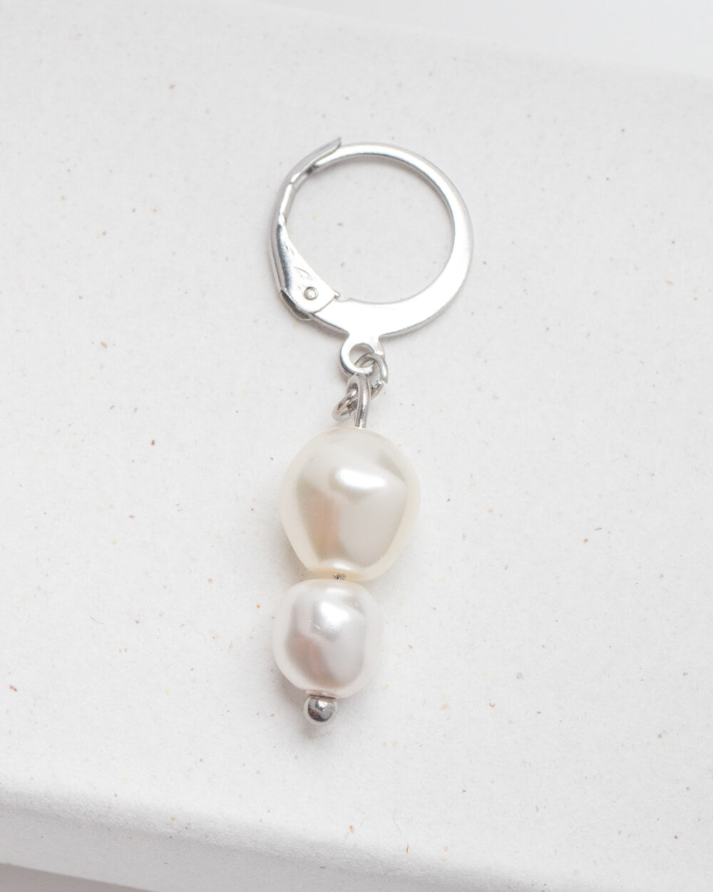Lunedì | Handmade Stainless Steel Double Vegan Pearl Huggie Hoops in Cream