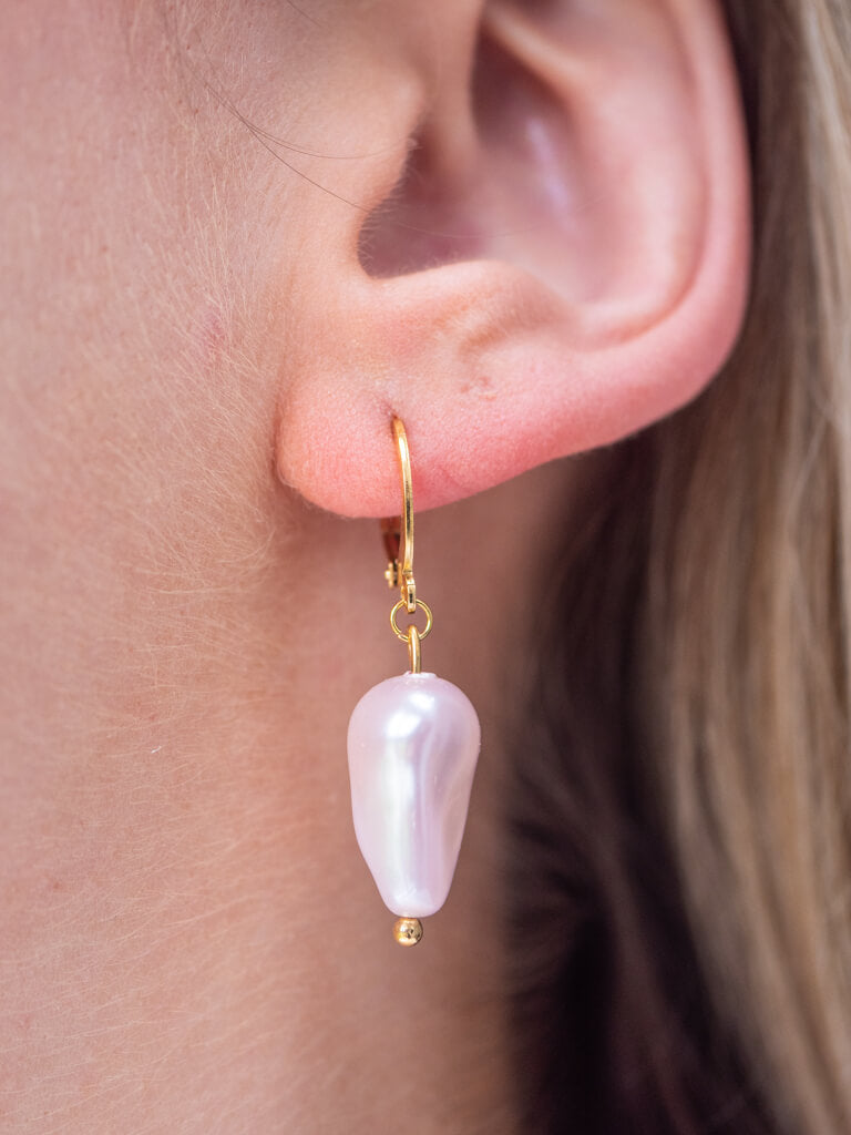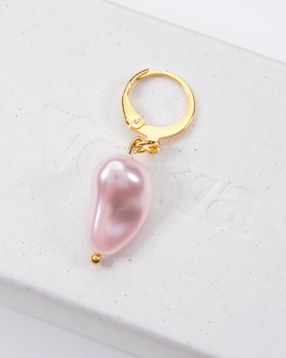 Sabato | Handmade 18k Gold Plated Baroque Vegan Pearl Huggie Earrings in Baby Pink